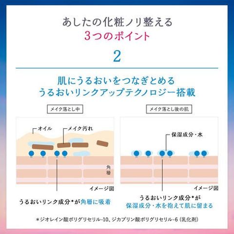●翌日の化粧ノリ、つるん!6つの機能(メイクオフ・毛穴汚れオフ・古い角質オフ・キメ整える・摩擦低減設計・うるおい守る)搭載で「明るい*まっさらすっぴん」。
