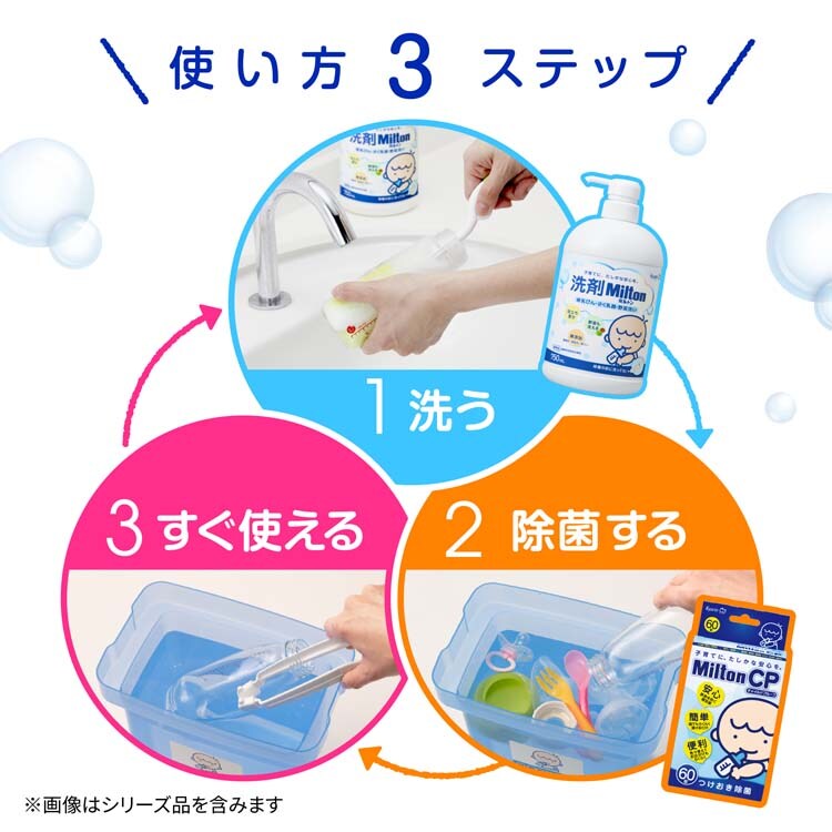 | 用途:哺乳びん、さく乳器、乳首、おしゃぶり、おもちゃ、離乳食用食器、離乳食用野菜・果物などの洗浄 |