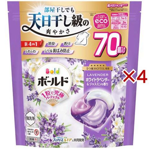 ボールド 洗濯洗剤 ジェルボール 4in1 心安らぐホワイトラベンダー&ジャスミン 詰替 (70個入×4セット)