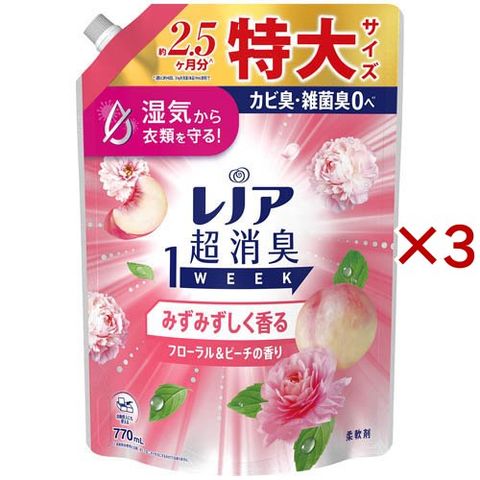 レノア 超消臭1WEEK 柔軟剤 みずみずしく香るフローラル&ピーチの香り 詰め替え 特大 (770mL×3セット)