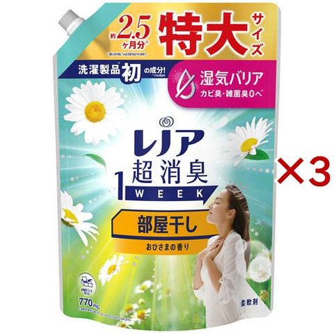 レノア 超消臭1WEEK 柔軟剤 部屋干し おひさまの香り 詰め替え 特大 (770mL×3セット)