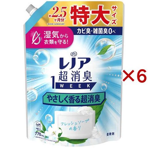 レノア 超消臭1WEEK 柔軟剤 やさしく香る超消臭 フレッシュソープ 詰め替え 特大 (770mL×6セット)