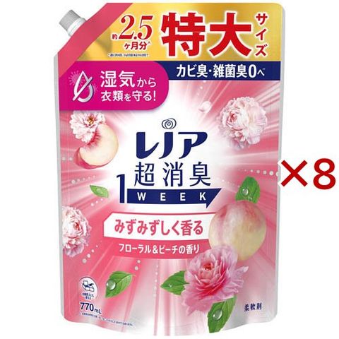 レノア 超消臭1WEEK 柔軟剤 みずみずしく香るフローラル&ピーチの香り 詰め替え 特大 (770mL×8セット)