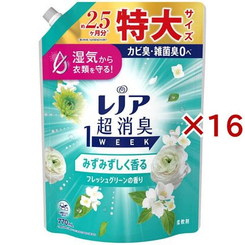 レノア 超消臭1WEEK 柔軟剤 みずみずしく香るフレッシュグリーンの香り 詰め替え 特大 (770mL×16セット)