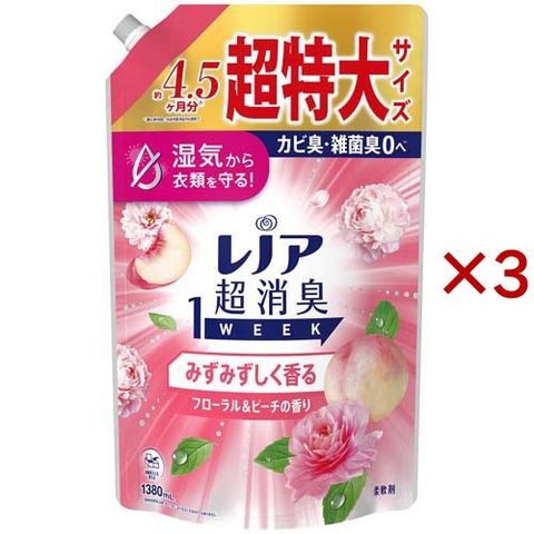 レノア 超消臭1WEEK 柔軟剤 フローラル&ピーチ 詰め替え 超特大 (1380mL×3セット)