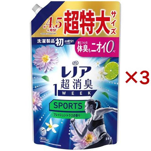 レノア 超消臭1WEEK 柔軟剤 SPORTS フレッシュシトラスの香り 詰め替え 超特大 (1380mL×3セット)