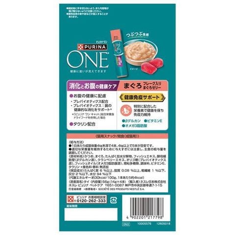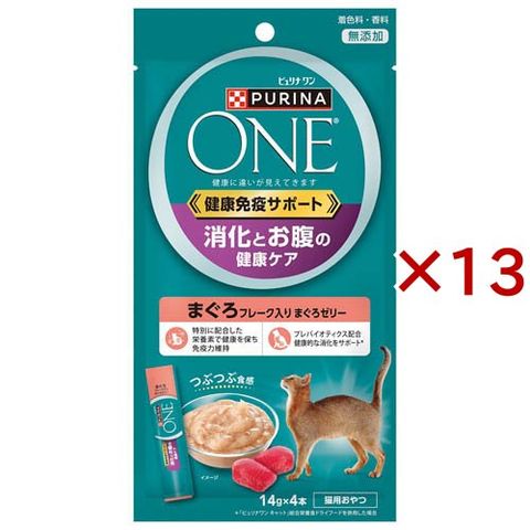 ピュリナワンキャット おやつ 消化とお腹の健康ケアまぐろフレーク入りまぐろゼリー (4本入×13セット(1本14g))