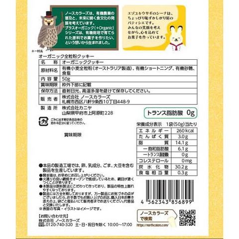 | 有機小麦全粒粉(オーストラリア製造)、有機ショートニング、有機砂糖、食塩 |