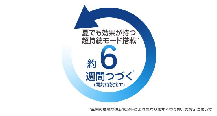 ●使用期間: 約6週間(開封時設定での試験時の状況に基づく。車内の環境や運転状況等により異なります。)