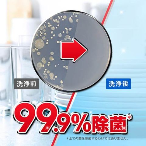 ※2菌の培養液にフィニッシュの水溶液1.5g/Lを入れて20分間放置した結果。(すべての菌を除菌するわけではありません)