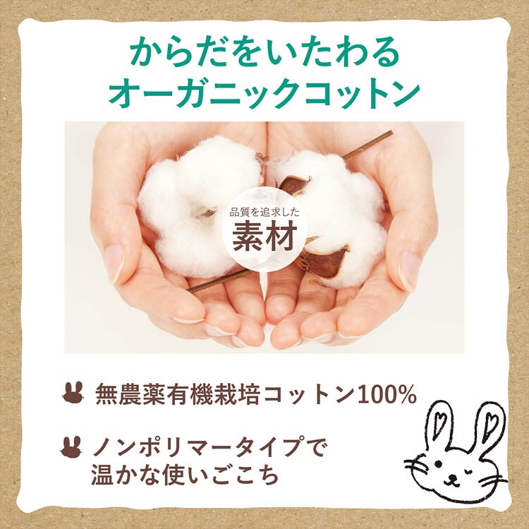 ●無農薬有機栽培のコットンのみをお肌に触れる表面シートに使用しています。オーガニックコットン100%。