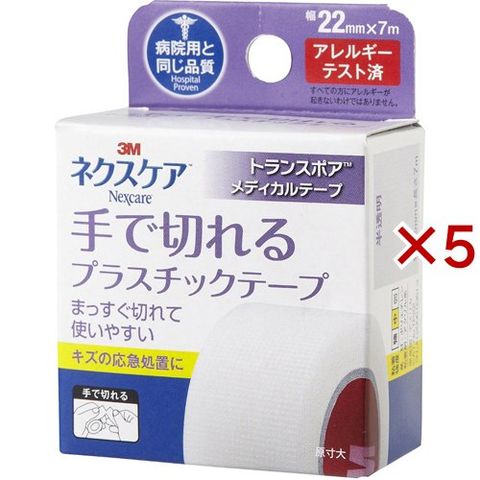 3M トランスポア 手で切れる プラスチック テープ 病院用同じ品質 22mm 7m TP22 (5セット)