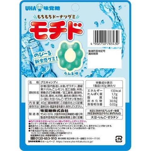 ●ラムネ味:もちもちのび~る食感のドーナツ型グミからラムネ味が!爽やかなラムネ味をお楽しみいただけます。