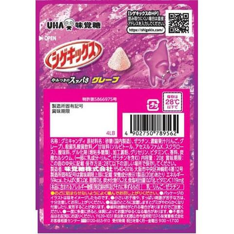 | 砂糖(国内製造)、ゼラチン、濃縮果汁(りんご、グレープ)、殺菌乳酸菌飲料/甘味料(ソルビトール、アセスルファムK、スクラロース)、酸味料、ゲル化剤(増粘多糖類)、加工澱粉、グリセリン、ビタミンC、香料、炭酸カルシウム、(一部に乳成分・りんご・ゼラチンを含む) |