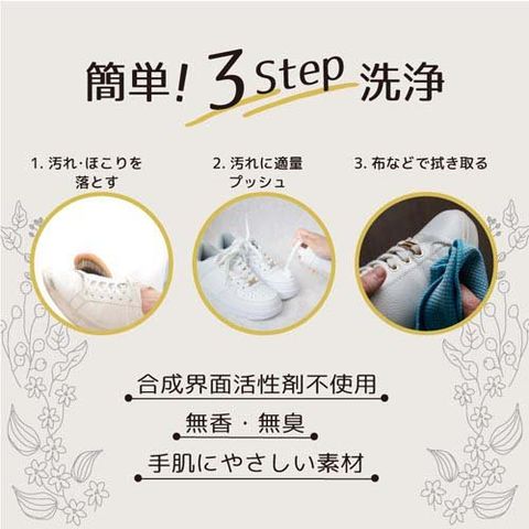 ●水洗い不要、泡タイプの靴シャンプーでお手入れが簡単。