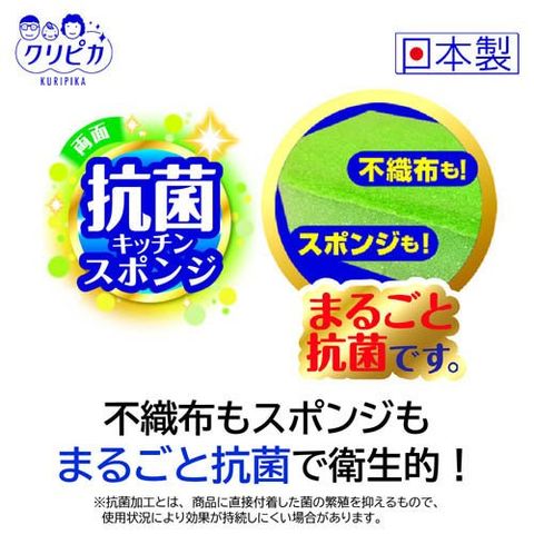 ●不織布もスポンジも抗菌効果があるキッチンスポンジです。(抗菌とは、商品に直接付着した細菌の増殖を抑えるもので、使用状況により効果が持続しにくい場合があります。)