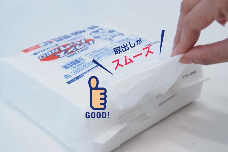 ●ソフトフィルム包装だから廃棄時のごみが小さく、箱を潰す手間いらず