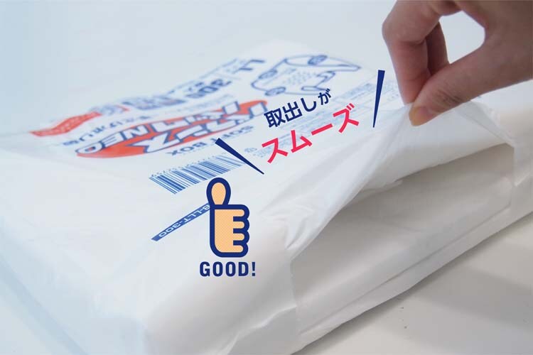 ●ソフトフィルム包装だから廃棄時のごみが小さく、箱を潰す手間いらず
