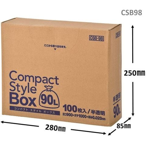 ジャパックス コンパクトスタイルボックス 半透明 90L CSB98 厚み:0.020mm (100枚入×4セット)