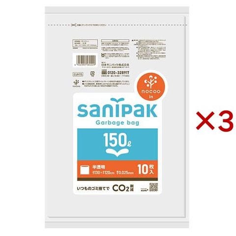 CUH15 サニパックポリ袋 nocoo in 150L 0.025mm (10枚入×3セット)