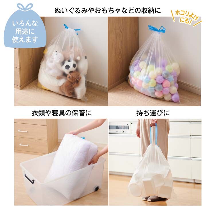 結びひも付ポリ袋 20L 0.015mm 半透明 (100枚入×3セット)