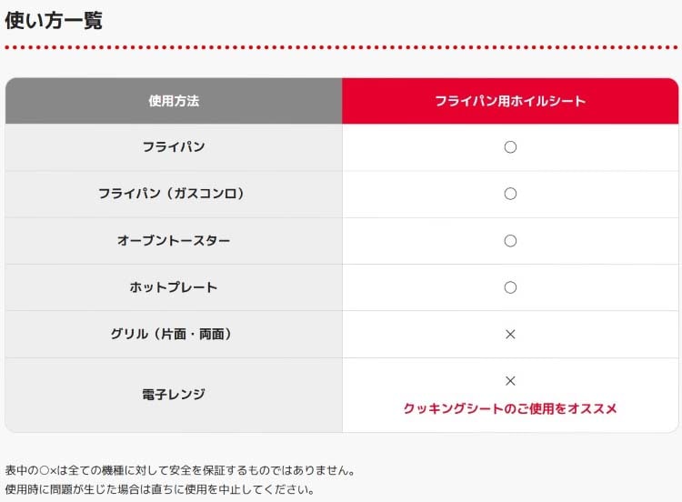 ・過加熱によりホイルが溶けることがあるため、直火や調理機器の熱源に触れる使用はしない。