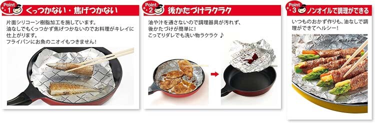 ●食材がくっつかないシリコン加工のホイル