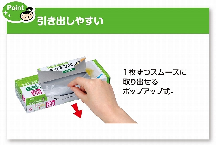 ●一枚ずつスムーズに取り出せるポップアップ式です。