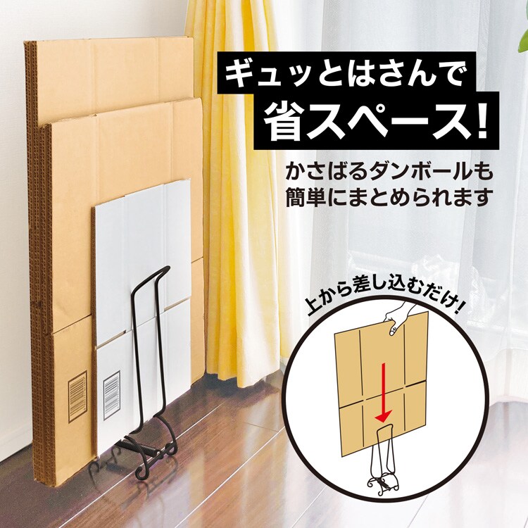 ●ギュッとはさんで省スペース!かさばるダンボールも簡単にまとめられます。