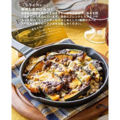 ●ドライカレー(リニューアル):牛挽き肉の旨みと玉ねぎの甘みに、25種以上のスパイスを効かせたスパイシーなドライカレー。スパイスの香る豊かな味わいをお楽しみいただけます。