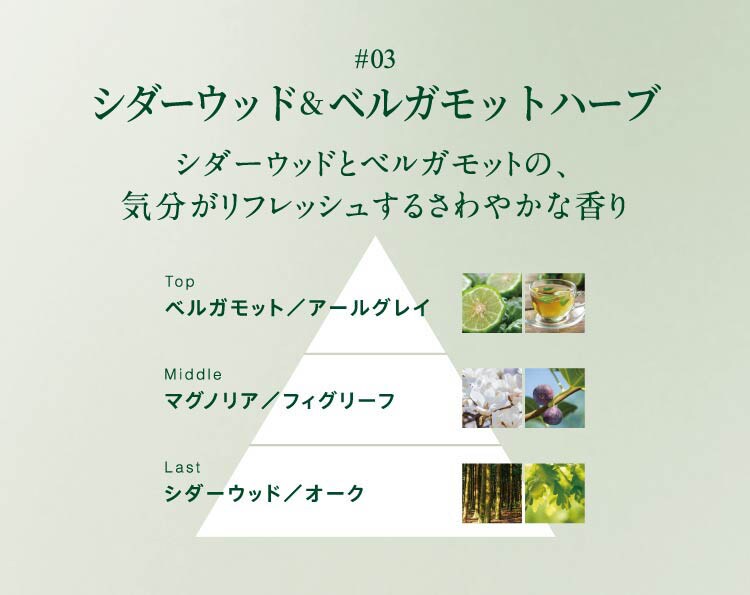 ●シダーウッド&ベルガモットハーブの香り。