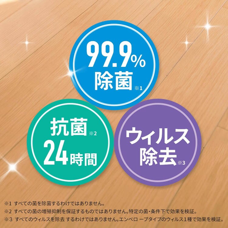 ●頑固な汚れも乾いた汚れもスッキリ 99.9%除菌 抗菌24時間 ウィルス除去。※