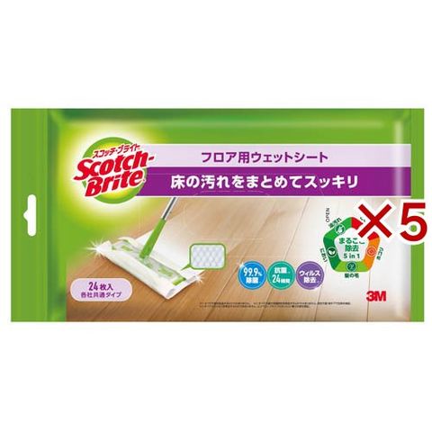 3M スコッチブライト フロア用ウェットシート 99.9%除菌・ウイルス除去 (24枚入×5セット)