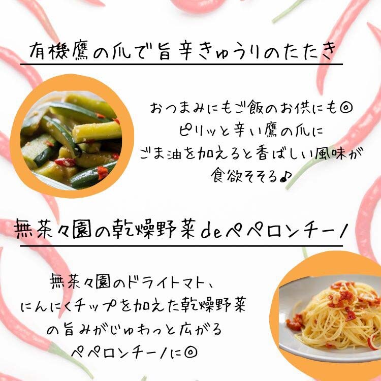 【無茶々園の有機鷹の爪 乾燥唐辛子の商品詳細】