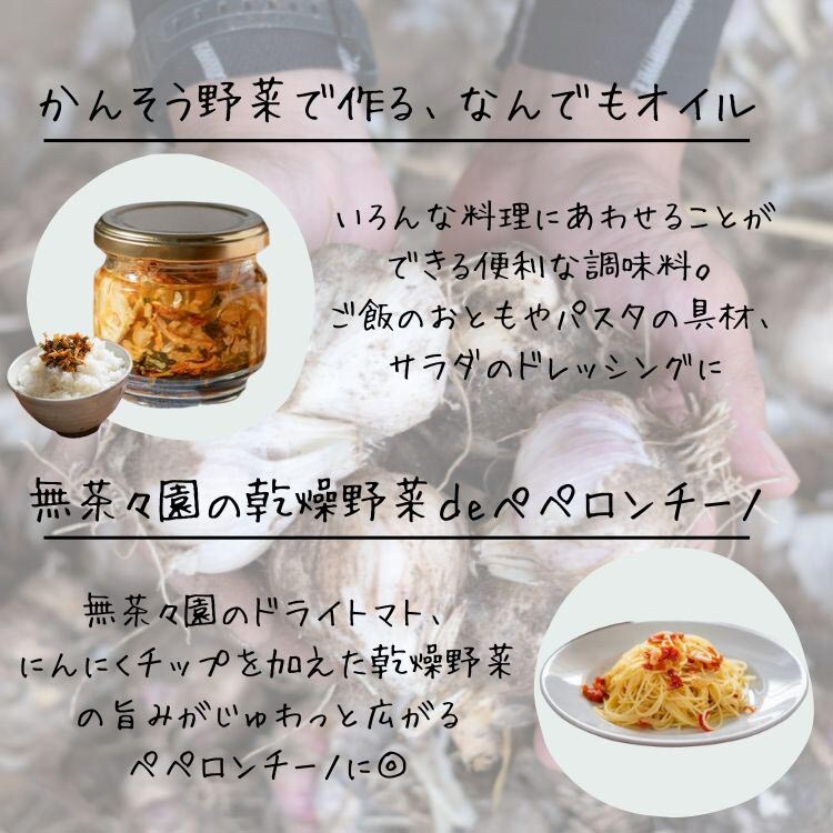 ●てまひまかけて育てた有機にんにくをじっくり天日と潮風で干しあげました。