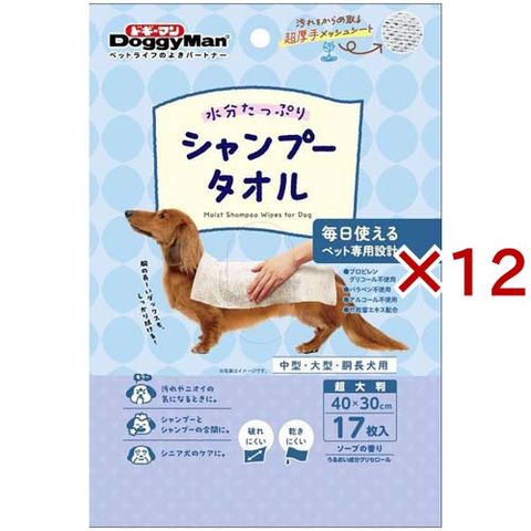 ドギーマン ウエットシャンプータオル 犬用 超大判 (17枚入×12セット)