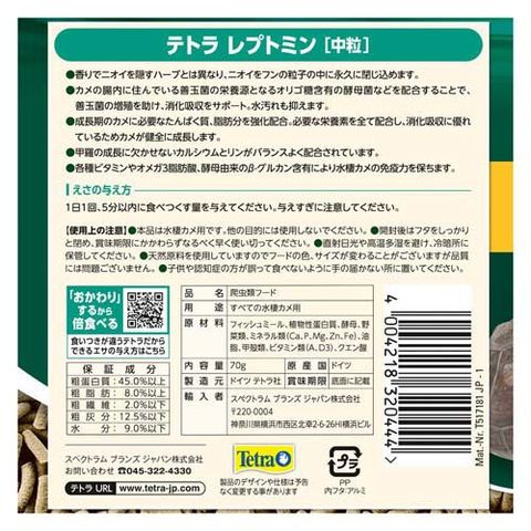 ●各種ビタミン、オメガ3脂肪酸、β-グルカン含有で健康維持によりカメの免疫力を保ちます。