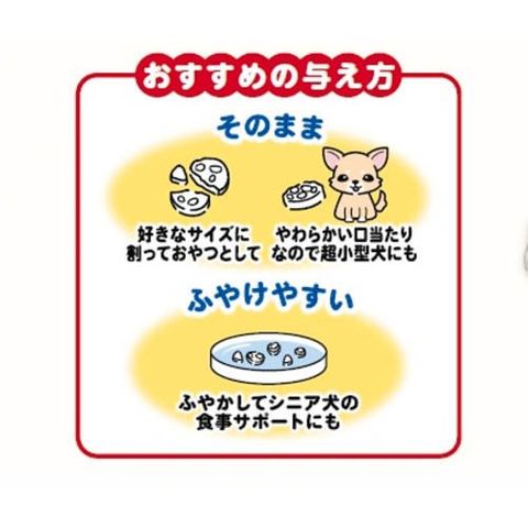 好きなサイズに割っておやつとして。ふやかしてシニア犬の食事のサポートにも。
