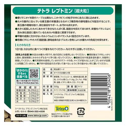 ●各種ビタミン、オメガ3脂肪酸、β-グルカン含有で健康維持によりカメの免疫力を保ちます。