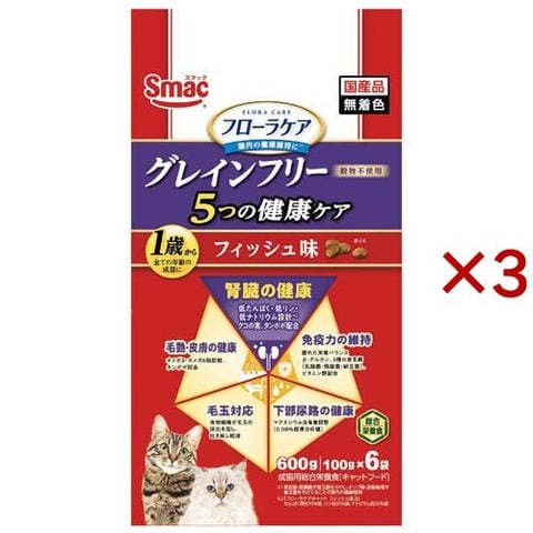フローラケアCAT 5つの健康ケア 腎臓 フィッシュ味 (6袋入×3セット(1袋100g))