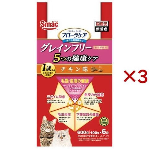 フローラケアCAT 5つの健康ケア 毛艶皮膚 チキン味 (6袋入×3セット(1袋100g))