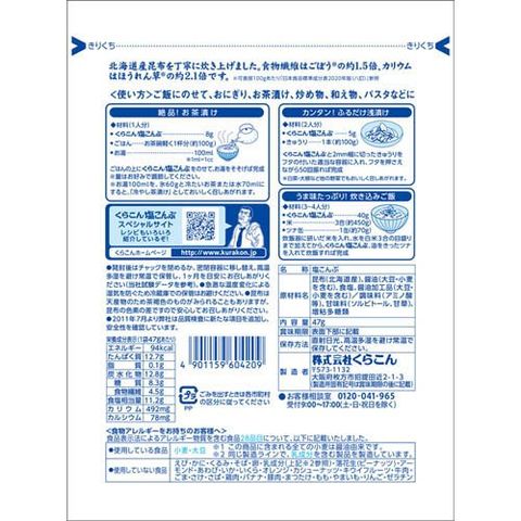 | 昆布 (北海道産)、醤油 (大豆・小麦を含む)、食塩、醤油加工品 (大豆・小麦を含む)/調味料 (アミノ酸等)、甘味料 (ソルビトール、甘草)、増粘多糖類 |