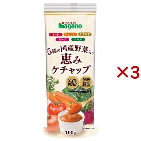 【訳あり】5種の国産野菜入り 恵みケチャップ (190g×3セット)