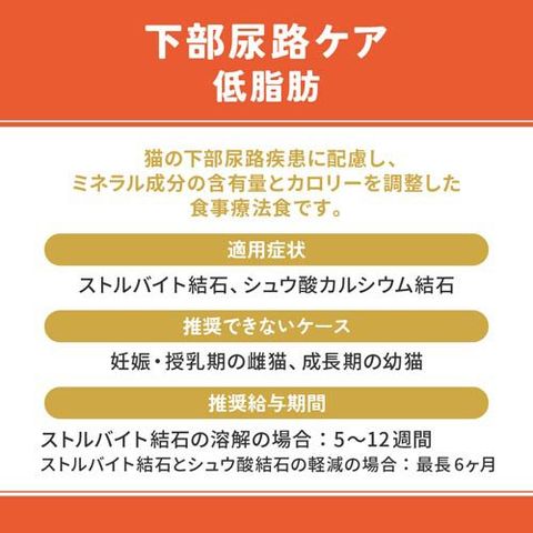 【ベッツウェル 猫用食事療法食 下部尿路ケア 低脂肪の商品詳細】