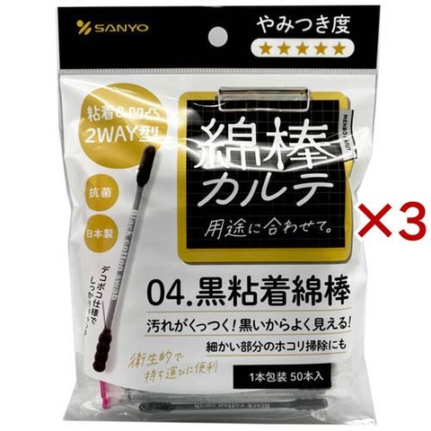 綿棒カルテ04.黒粘着綿棒(1本包装) (50本×3セット)