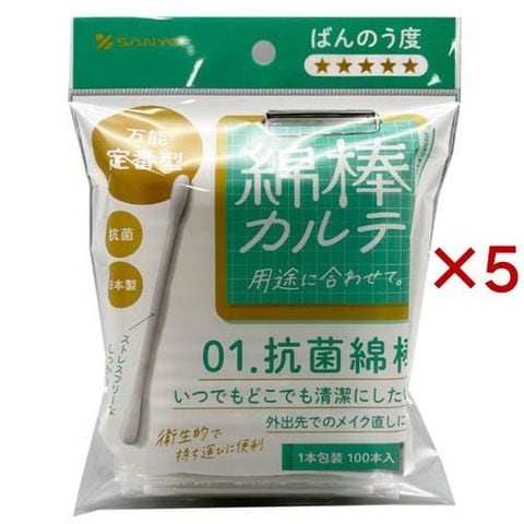 綿棒カルテ01.抗菌綿棒(1本包装) (100本×5セット)