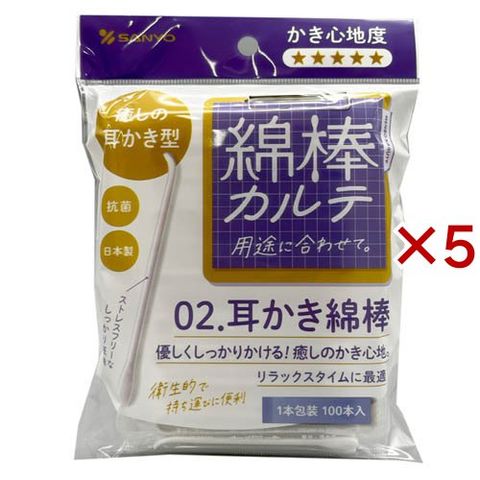 綿棒カルテ02.耳かき綿棒(1本包装) (100本×5セット)