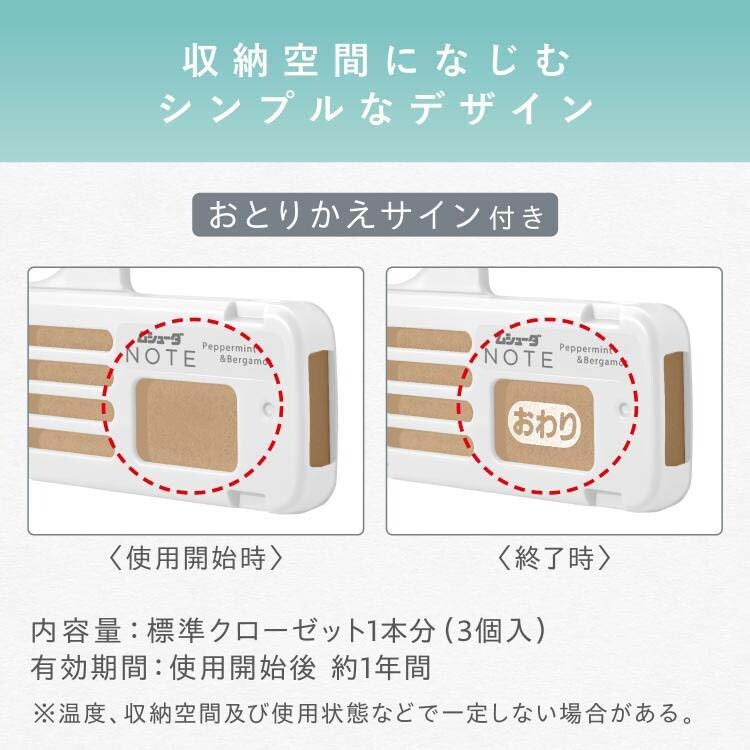【クローゼット用 ムシューダ ノート 防虫剤 ペパーミント&ベルガモット 1年間有効の商品詳細】