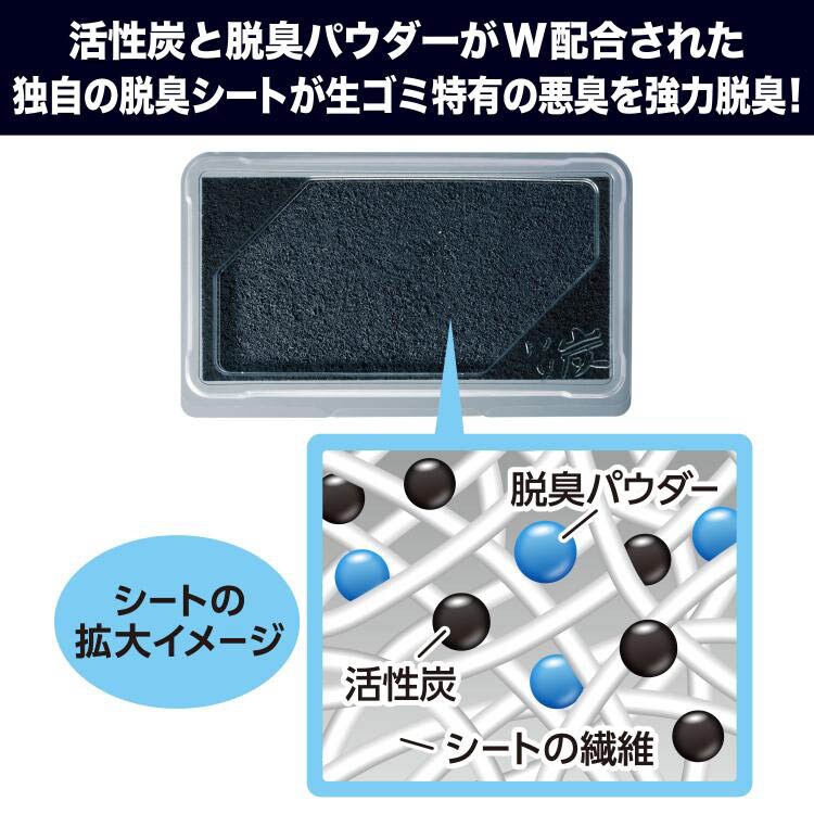 ●活性炭と脱臭パウダーのWの効果で生ゴミ臭を強力脱臭!