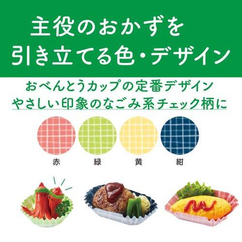 ●おかずを引き立てる4色入(緑・黄色・赤・紺)&チェック柄